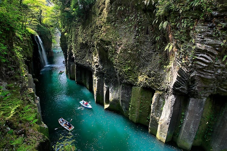 数キロにわたってそそり立つ柱状節理の断崖絶壁が圧巻の高千穂峡は