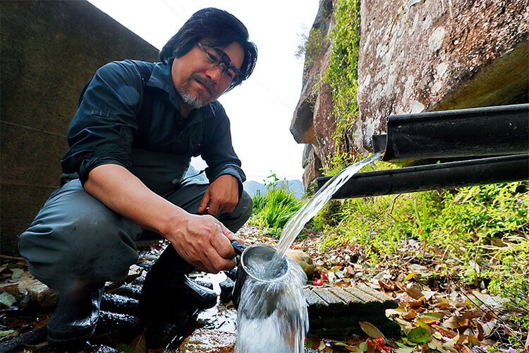 鹿川渓谷に向かう道すがら冷たくて美味しい湧き水で喉を潤す。