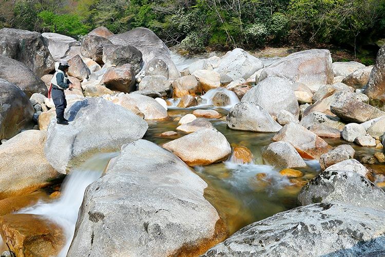 鹿川渓谷は花崗岩で形成された九州きっての美しい渓谷だ。