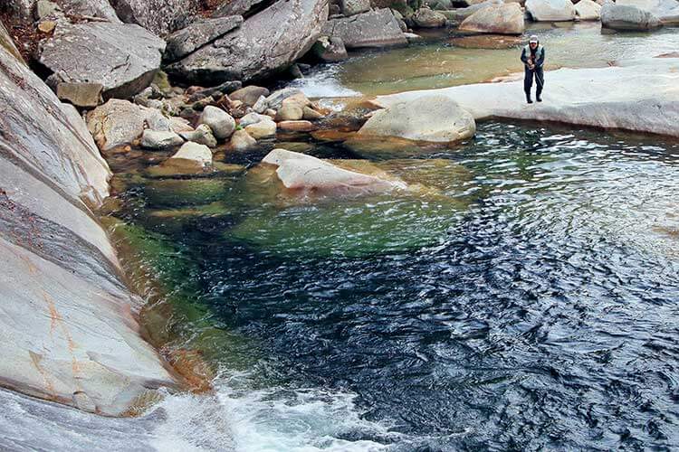 V字谷の絶景の中でヤマメと戯れようとクルマを走らせた。