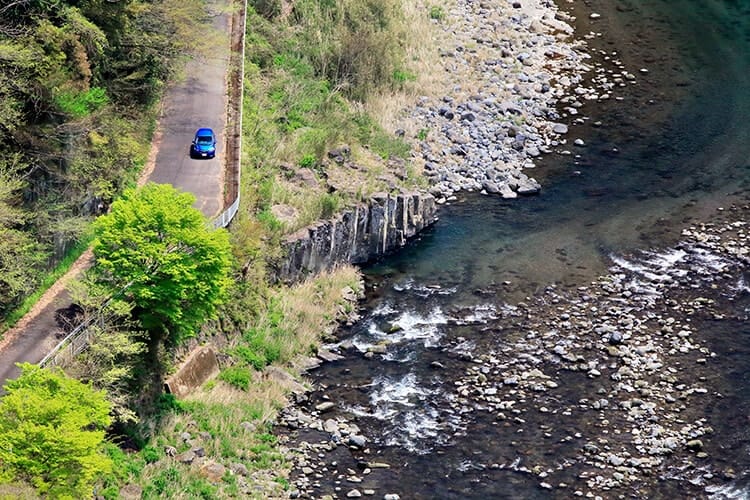 長く続く山道を走り鹿川渓谷にたどり着くと、