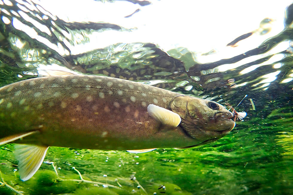 しばらくして良型のイワナがスッと浮き、なんのためらいもなくフライを吸い込んだ。