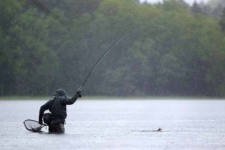 雨がぱらつくなかで釣りをしていると、
