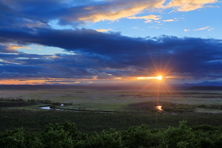 日が沈むころ、釧路湿原へ立ち寄って、広大な原野を眺める。