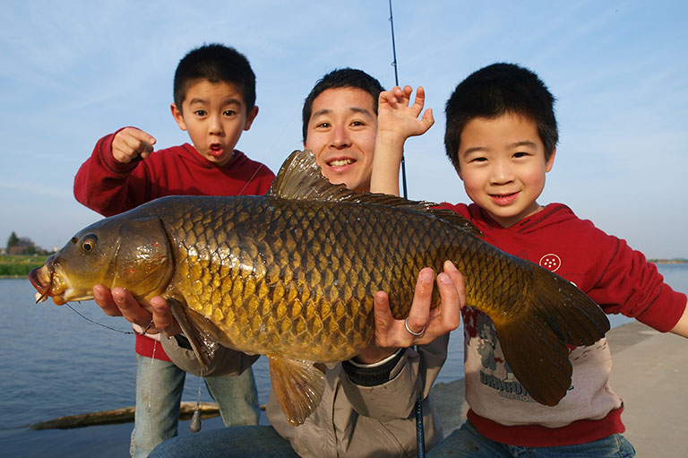 そう思う方もいるだろうが、実はここ、ターゲットはかなり豊富。コイやマブナ、ナマズ、アユ、ヤマメ、オイカワなどのほか、河口付近ではシーバスなども釣れる。