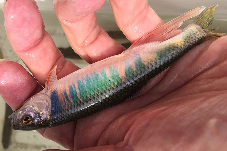 もうひとつ、近年注目したいのは遡上魚の増加。かつて水質がよくなかった時代、多摩川ではアユなどの遡上数は激減していた。しかし排水される水がきれいになってゆくと、遡上数は年々増加。ジャンプして堰を越えようとする稚アユの姿が確認できるようになった。その結果、アユを追いかけて下流部に入ってくるスズキも増え、今ではルアーアングラーの数も多くなっているのだ。