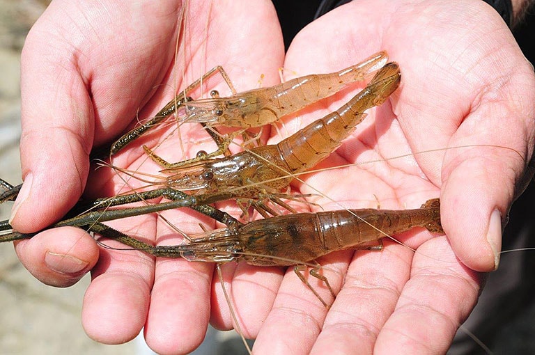 そして、なにもそんな上流に行かずとも、実はこの時期親子でねらえるターゲットがいる。多摩下流部のテナガエビだ。子どもでも楽しめる手軽な釣りではあるが、アワセのタイミングは意外と難しく、ベテランでもついつい夢中になってしまう。ちなみにテナガエビは食べてもとても美味しく、シンプルに塩焼きにしたり、空揚げにするとぷりぷりした身は絶品。