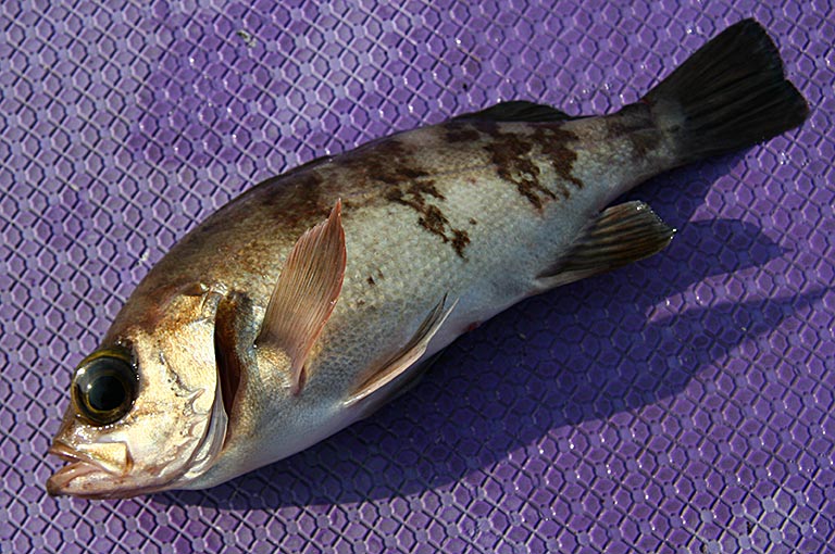 北海道南部を北限に、太平洋側では関東周辺まで、日本海側では対馬周辺まで生息するのがウスメバルだ。大きさは最大35cm前後で、メバルよりも身が柔らかく、煮付けにすると非常に美味。メバルよりも深い海域に生息していて沖釣りでねらう。薄い赤褐色の体の背側に、はっきりとした褐色の模様が入り、鮮やかな体色は春を告げる魚に相応しい。近縁種のトゴットメバルに似ているが、ウスメバルはこの模様がやや大きい。