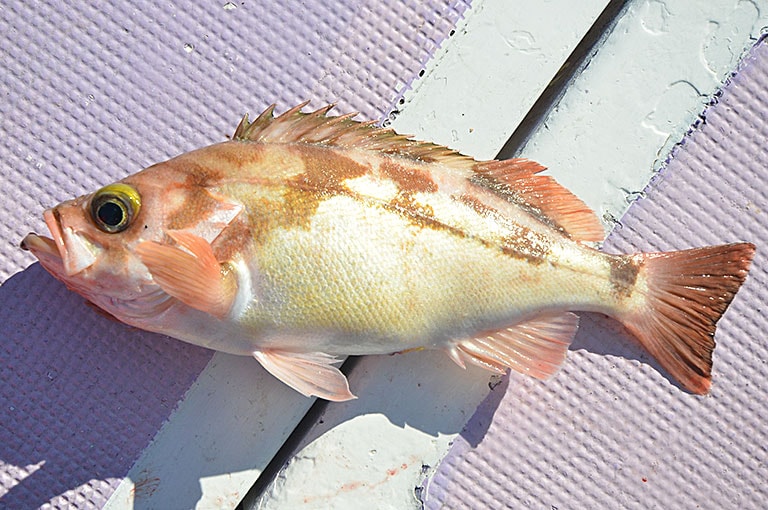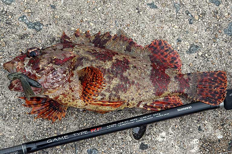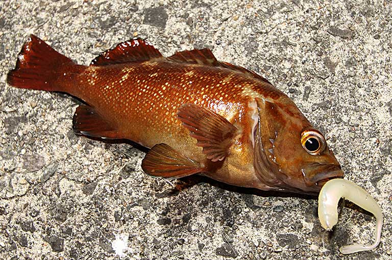 東北方面を中心にアングラーの憧れの存在になっているのがタケノコメバルだ。その魅力は大型に育つことで、北陸地方から北のエリアでは50cmオーバーも見られる。当然、大型になればファイトは強く、しかも食べて旨いとくれば人気が高いのはうなずけよう。全体的に黄褐色で濃い褐色の斑点があり、その模様がタケノコの皮やベッコウに見えることからベッコウゾイという地方名を持つ。