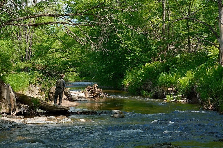 一方、森や谷など遮るものが多く、日差しが差し込みにくい渓流釣りでは、濃い色はあまり適していない。そんな場合は、なるべく周囲が明るく見える可視光線透過率の高いライトブラウンなどがマッチする。
