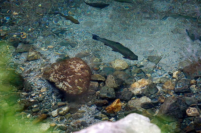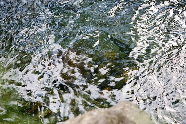 偏光グラスは乱反射する光を調整し、水面のギラツキを抑えて水中のようすをつかみやすくしてくれるのが最大の特徴。川で魚を見つけるときはもちろん、遡行する際に底が岩なのか砂なのか、躓くような障害物はないかといった情報も得られ安全を確保するのに重要な役割を担う。