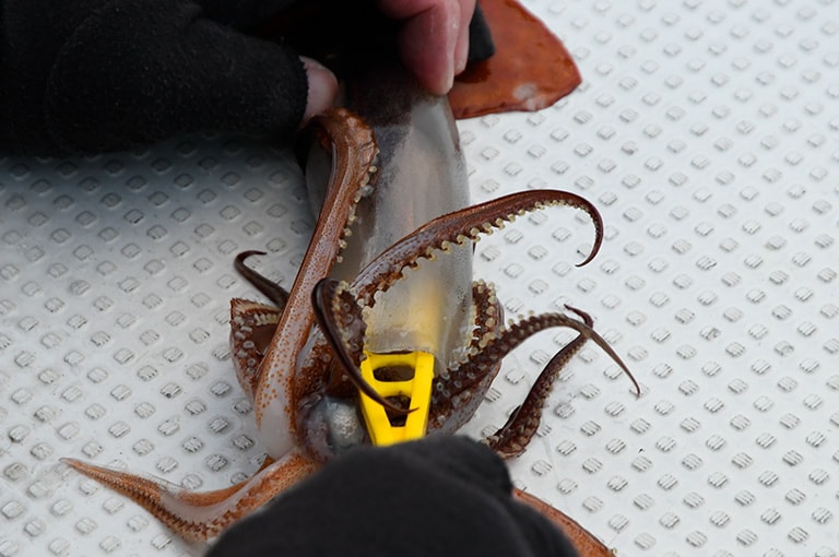 数が釣れているときは魚をスカリなどに入れておき、アタリが途絶えたタイミングや船ならポイントを移動するときにまとめて生き締めにするとよい。