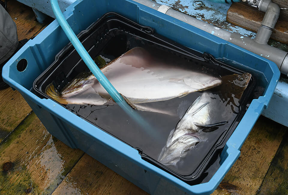 また、クーラーボックスに氷と海水を入れ、その中に魚を入れる海水氷を利用する手もある。