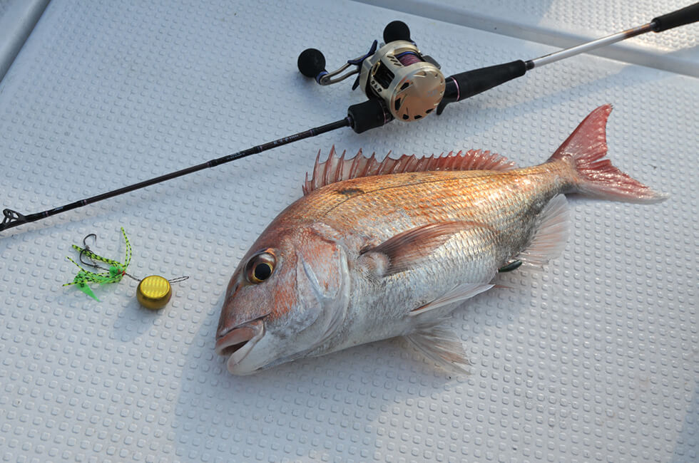 ちなみに4kgを超える大ダイが釣れやすいのもタイラバの特徴だ。大きいタイほど警戒心が強く、たとえ本物のエサであってもイトやハリの違和感を察知して見切ってしまうことが多いのだが、タイラバの場合は本能を刺激することで口を開かせることができるのだ。