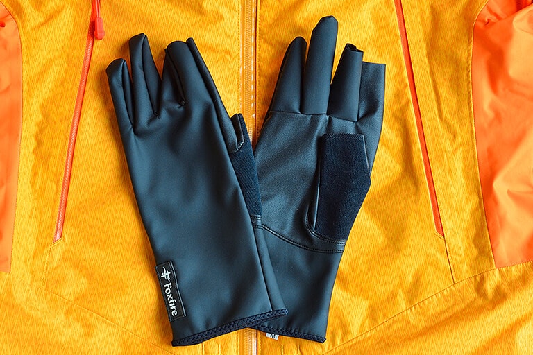 手袋をはめたまま細かい作業ができるよう釣り用手袋の中には、“3本カット”などと呼ばれる親指・人差し指・中指をカットしたタイプがある。それほど気温が低くなければ3本カットはとても重宝する。