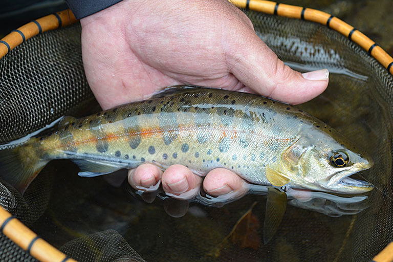 ヤマメ、アマゴ、イワナといった渓流魚は、サケの仲間だ。サケはよく知られているように、親魚が秋に海から川にやってきてペアリング・産卵。卵から孵化した稚魚は、しばらく川で過ごしたのち、翌年の春になると、栄養やエサがより豊富な海へ降りて成長する。