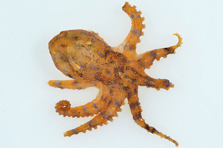 海に棲む咬毒生物といえば、ウミヘビ類がよく知られるが、釣りで出会う可能性はほとんどない。ウツボ類は噛まれると危険だが、咬毒は持っていない。釣れる可能性があって咬毒を持つ生物としては、ここで紹介する猛毒のヒョウモンダコのほか、マダコやサメハダテナガダコも咬毒を持つ。