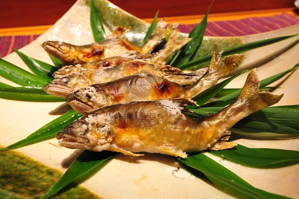 そうして手にしたアユは川魚の中でも屈指の美味しさで、良質なコケを食べていることで身に付く甘くほろ苦いハラワタ、上品な白身の組み合わせは、まずは塩焼きで味わうと格別です。