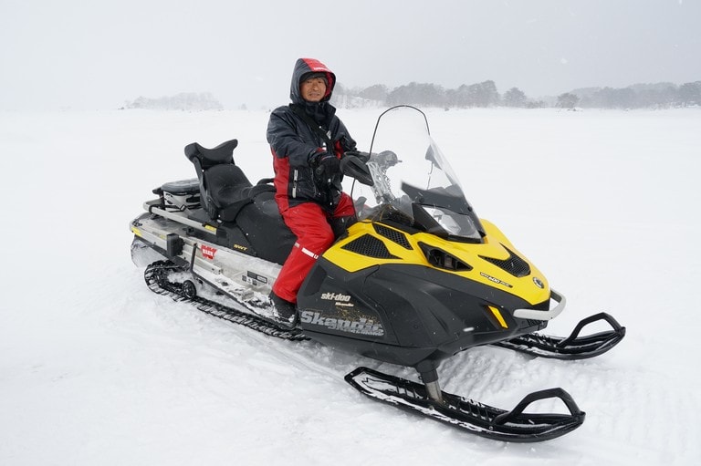 磐梯高原の豊かな自然に囲まれた桧原湖。ワカサギ釣りのシーズンは11月に始まり、湖が完全結氷する1月中旬から3月下旬が氷上釣りシーズンになります。水質がよいことで知られる桧原湖のワカサギは非常に美味と評判。各地区にレンタルハウスや屋形船が設置しているワカサギ釣り施設があり、それらに予約を入れて釣りを楽しみます。屋形船までは駐車場からスノーモービルで移動。手軽かつ快適に氷上釣りが体験できます。