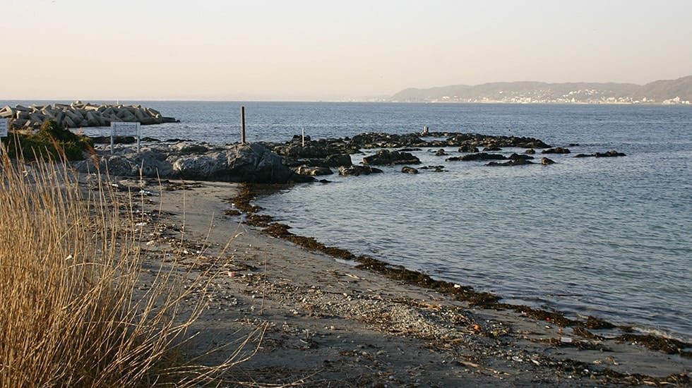横浜横須賀道路・衣笠ICから三浦縦貫道経由でR134を三崎方面へ。荒崎入口交差点を右折し荒崎公園駐車場へ。