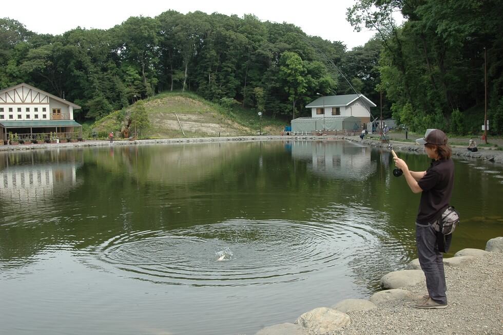 東名高速道路・川崎ICから約10分。都心部からでもアクセス容易な住宅街の中に立地。敷地内に4つの池が並び、ルアー、フライ、ファミリーエサ釣りと幅広い釣り方が楽しめる。池の横に整備された屋根付きのバーベキュー施設もあり、釣ったニジマスを食べるのも楽しい。受付に併設のカフェ兼レストランもありランチに訪れる人もいる。