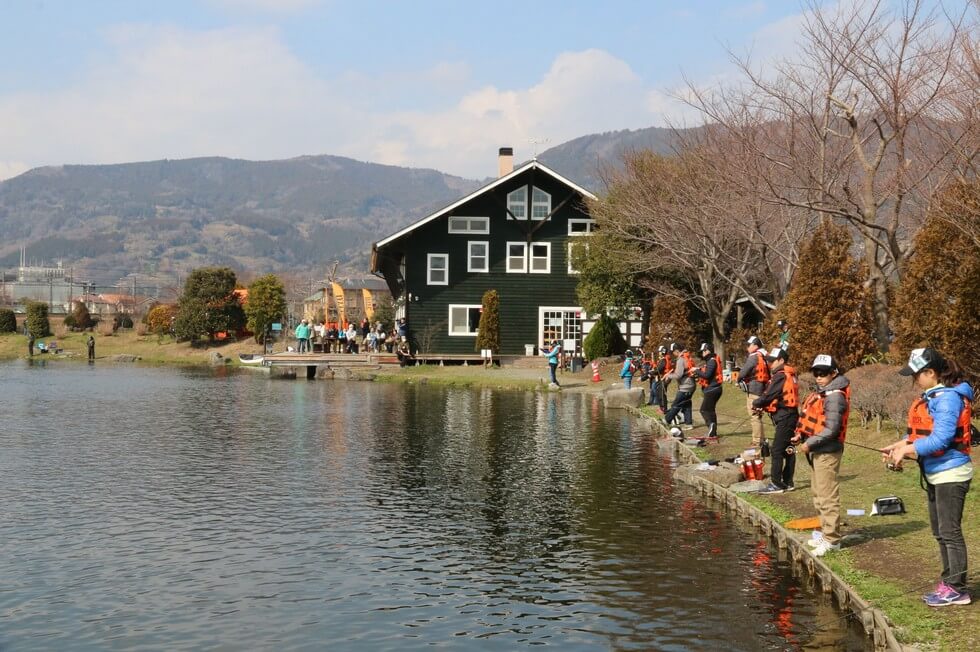都内からもアクセスのよい郊外にありながら、コンディションのよいニジマスが泳いでいることで人気の釣り場。アユ釣りで名高い酒匂川沿いに立地しており、地下水を引いた3つの池で釣り場を構成。子供や家族連れを対象としてフィッシングスクールも定期的に開催している。湖畔には食堂と売店を兼ねたレストハウスもある。