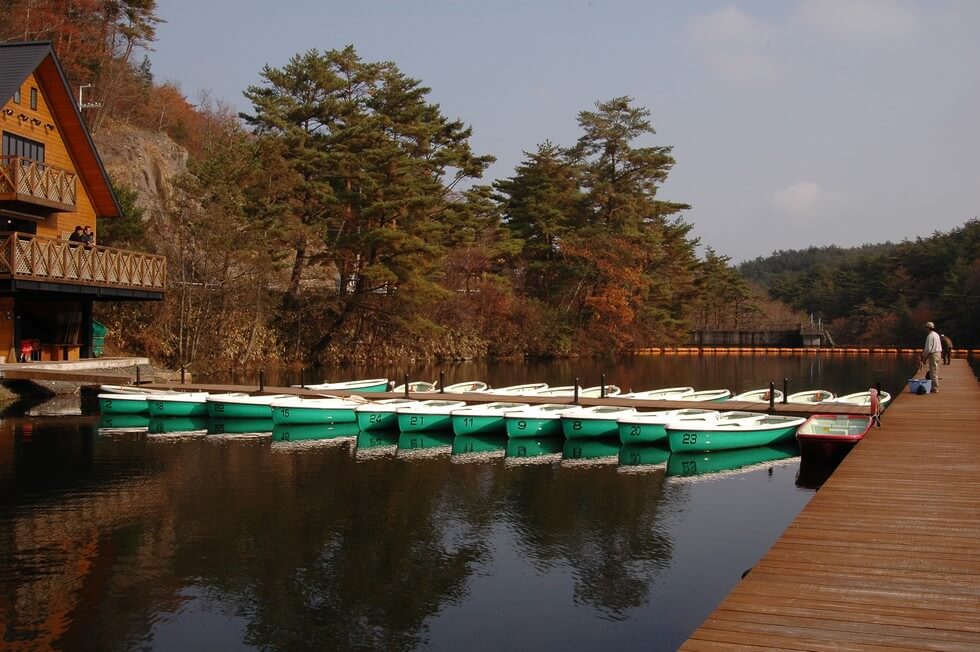 北摂の最高峰、深山の東「るり渓谷」にある2つの谷の合流点に位置し、関西では珍しく手漕ぎボートからのニジマス釣りが楽しめる管理釣り場。面積3万5000㎡、最深部8mの通天湖に浮かんで釣りをすれば、日常から離れられること間違いなし。ボートに乗らず浮き桟橋から釣ることもできる。スクールも随時受け付けている。