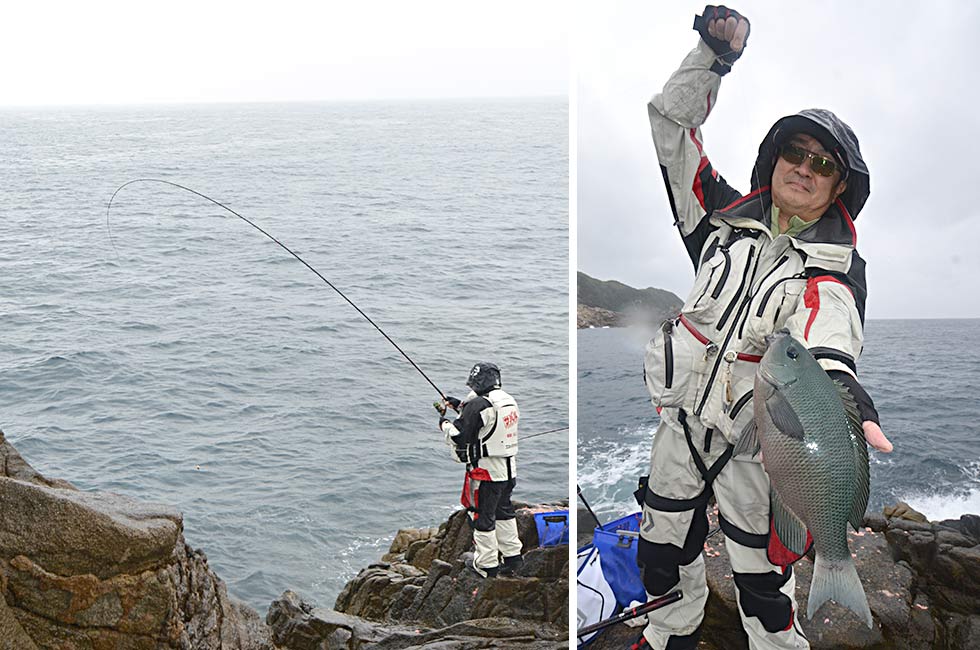 もちろん場所や釣り方によっては雨がマイナスに働くこともありますが、多くの場合、雨は釣り人の味方です。クロダイ、スズキ、メジナなど、日中に警戒心が高い魚をねらうのも、雨の日はチャンスになります。また、釣りでレインウェアが活躍するのは雨の日だけではありません。波をかぶる船釣りなどは天候を問わず性能のよいレインウェアを着ている釣り人が非常に多いです。