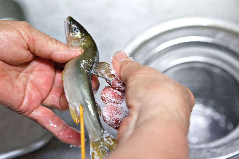 アユは繊細な身をしているので、適当に焼いてしまうと、思った以上に水っぽくなったり、逆にパサパサになってしまったり、仕上がりがなかなか安定しません。
