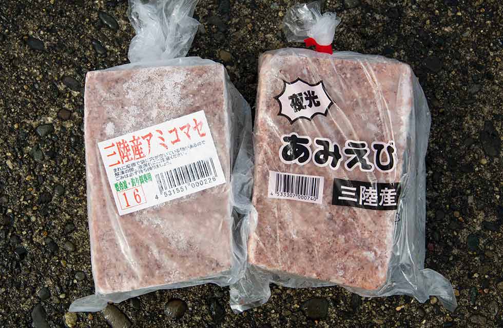 ちなみに、オキアミは見ためこそエビに似ていますが、食用にされることはほぼありません。一方、アミのほうは小エビに似た風味で、岩手ではアミ漁(イサダ漁)の解禁が春の訪れを告げる風物詩のひとつでもあり、乾燥させたアミは、煎餅の材料や輸出されてキムチの漬け込み材料となって、私たちの食卓にも届いています。