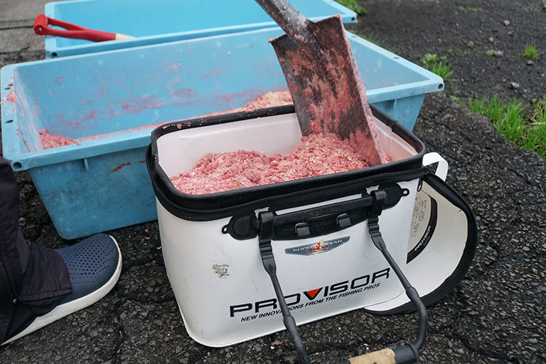 臭いは元になる雑菌が繁殖してしまったあとほど落ちにくいのでスピードも大切。また最後は天日干しによる完全な乾燥と殺菌をしっかり行ないます。厄介なのはオキアミそのものだけでなく、オキアミの成分が解けた汁も臭いの原因になることです。「いろいろ洗ったはずなのに、いつまでも嫌な臭いがする……」という場合、原因は水汲みバケツに付属しているロープやバッカンのファスナー部分に染み込んだオキアミの汁だったりします。