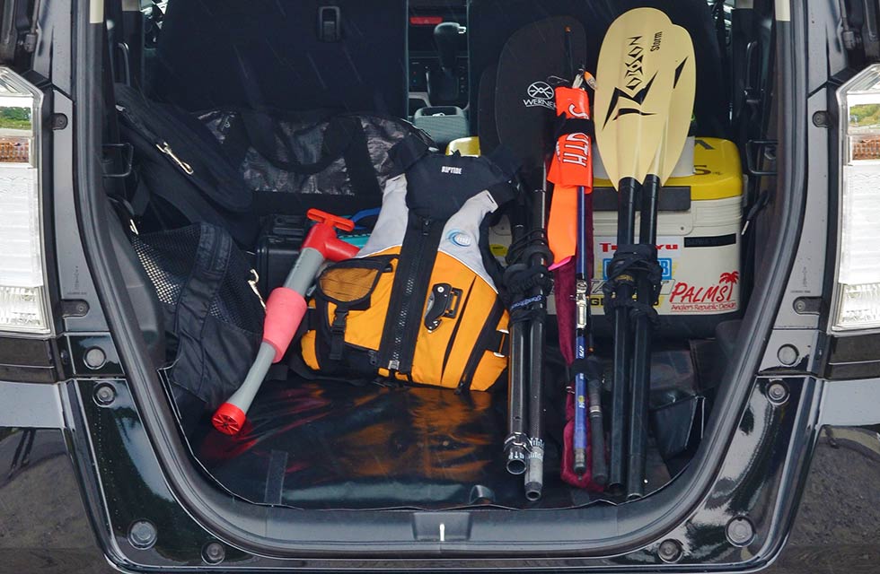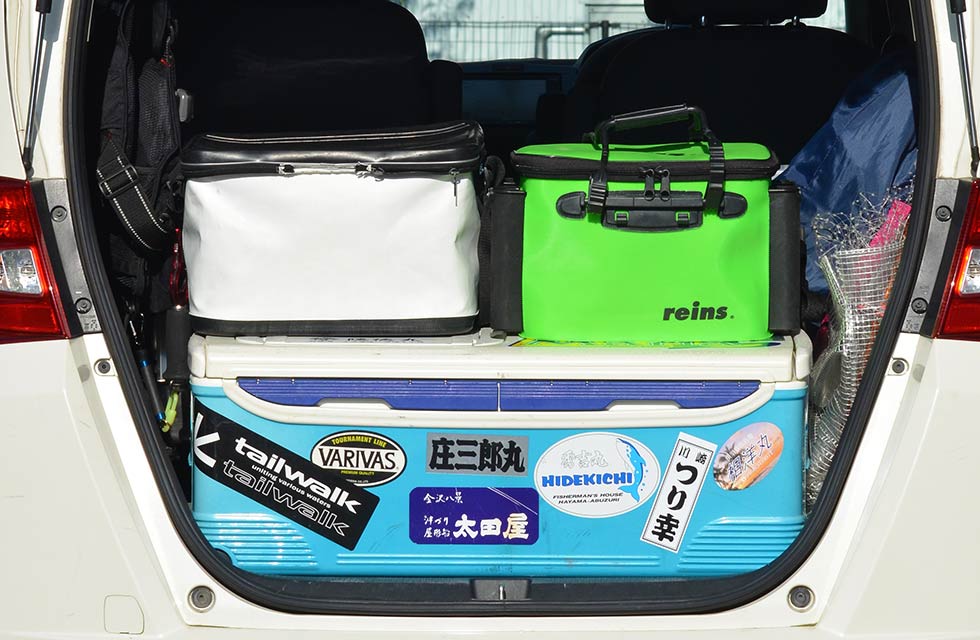また、荷室(特に底面)がファブリック地なら、純正品やカー用品店で手に入る防水シートやトレーは必ず用意したいアイテムです。クルマはファブリック地の部分に臭いを含んだ水分が吸収されてしまうとなかなか臭いが取れません。バッカンそのものが汚れてしまい、釣り場ですぐに洗えないような場合は、あらかじめ大きめのビニール袋を用意しておき、それらに包んでからクルマに積むようにします。ビニールがなければレジャーシートや古いバスタオルでくるむのも悪くありません。そして帰宅し荷物を下ろしたら、その日のうちに荷室全体をきれいに水拭きするひと手間を惜しまないようにしましょう。