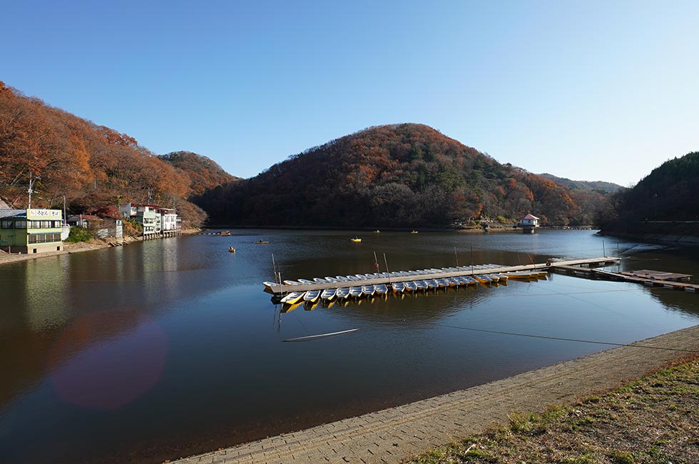 神奈川県相模原市にある相模湖は、上流から流れ込む川の影響でワカサギのエサになるプランクトンが多く、「シシャモサイズ」と称される大型のワカサギがねらえます。ワカサギ釣りのシーズンは毎年9月から3月。湖畔には複数のレンタルボート店があり、ワカサギが釣れるポイントまで店の船で連れて行ってもらえます。周囲の紅葉は例年11月初旬から中旬が見頃。また、11月からは室内感覚で釣りができるドーム船の営業も行なわれています。