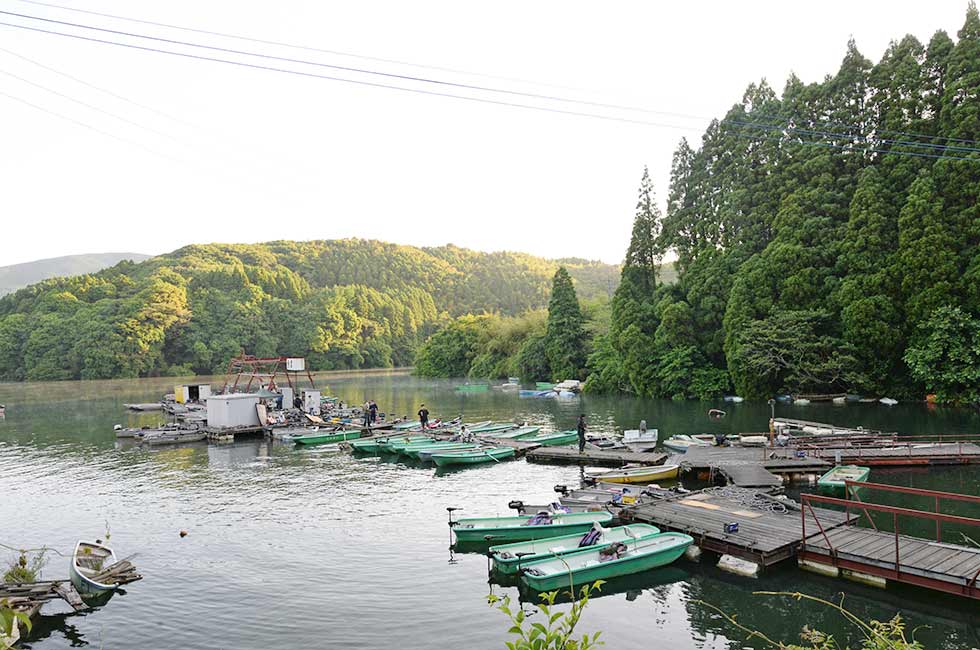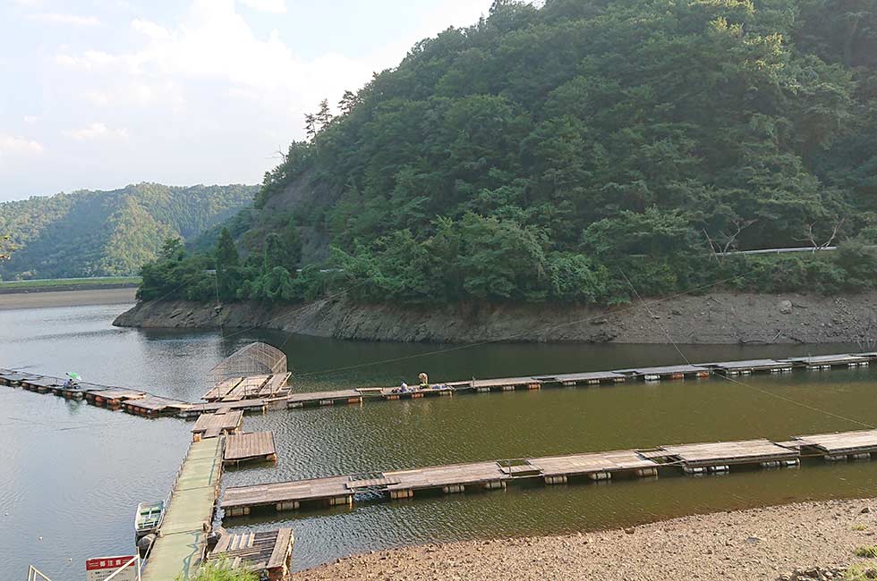 奈良県の津風呂(つぶろ)湖は、吉野町の山間にあるダム湖。例年11~3月頃にレンタルボートまたは桟橋からのワカサギ釣りが楽しめ、上級者には2000尾を釣る人が出るほどワカサギの数が多い釣り場です。レンタルボートの場合は深い場所で水深が45mほどあるため、重めのオモリ(5g)を準備しておくのがコツ。レンタルタックルもその設定になっています。桟橋からの釣りは屋外とビニールハウス内(ドーム桟橋)で楽しめ、水深は20~25mほどです。