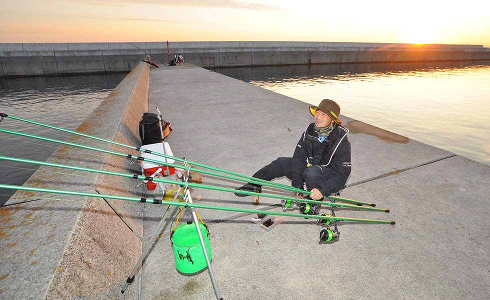 動きの少ないカレイを釣るには、同時に2~4本のサオを置きザオにして待ちます。そして仕掛けを投入したらそのままほったらかしにするのはダメで、5分から10分に1度は仕掛けを動かしてやります。「誘い」という動作で、これによってカレイの目を引くことが大切になります。誘いによって食い気がなかったカレイにスイッチが入り、反射的に食い付くことが多々あります。ルアー釣りで言うところのリアクションバイトです。誘いをかけてサオを三脚に置いた途端に当たるケースがよくあるので、誘いの後は油断しないようにしましょう。