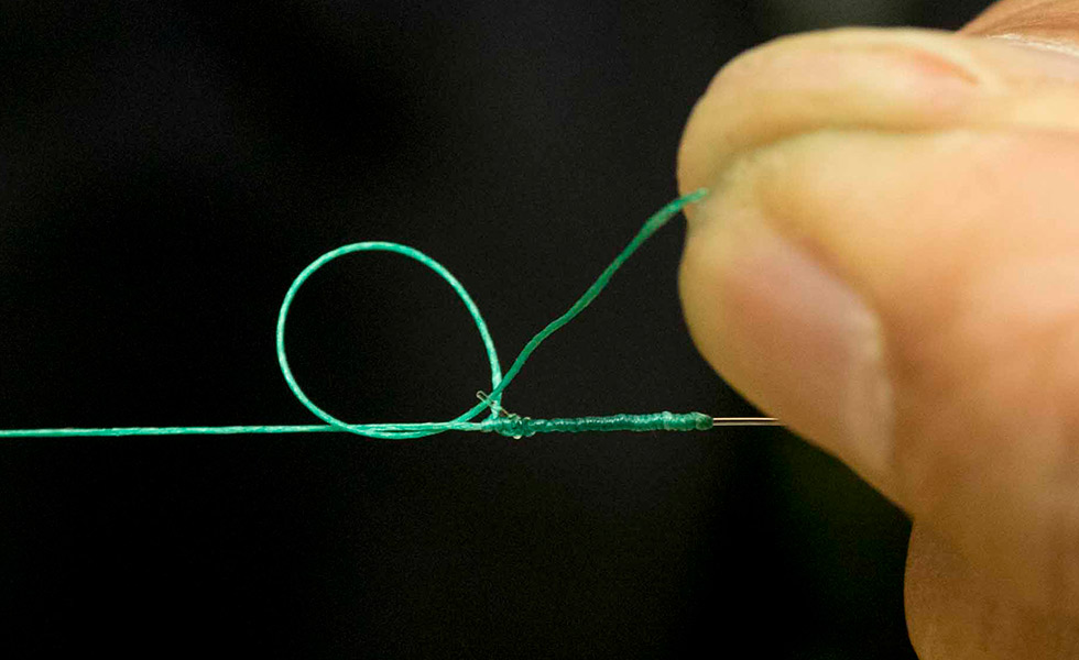 PEラインは極細の原糸を専用の機械で撚り合わせ、仕上げにコーティングするという製法で作られています。そして、従来の釣り糸に比べ、同じ強度でも直径がはるかに細く、引っ張られた時に伸びがなく、ただし滑りやすいという性質を持っています。そのため、PEラインが登場する前までに使用されていた、フロロカーボンラインやナイロンライン同士の結び方をそのまま使っても、PEラインのほうが滑ってしまい、力が掛かった時にほどけてしまうという難点がありました。