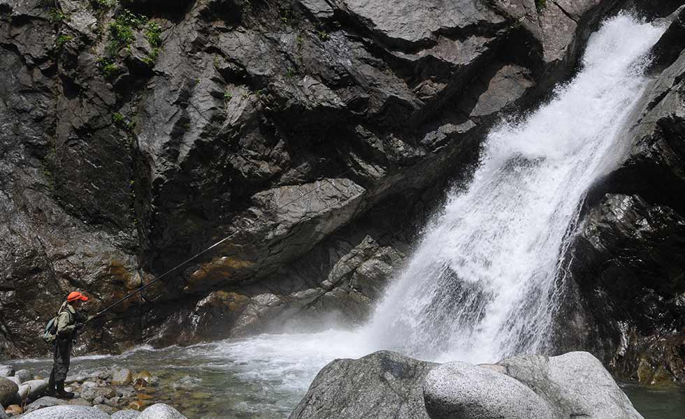 渓流では少しでも早く水際に立ちたくなりますが、山の斜面の中には、落差のある崖の上に繋がっていたり、下りることはできても、引き返す(上り返す)ことは難しい場所がよくあります。地形図などを見て事前の情報収集をしておくのが基本ですが、現地で斜面を下りるか迷った場合、必ず「ダメな場合に引き返せる場所か?」を常に確認してから行動に移りましょう。
