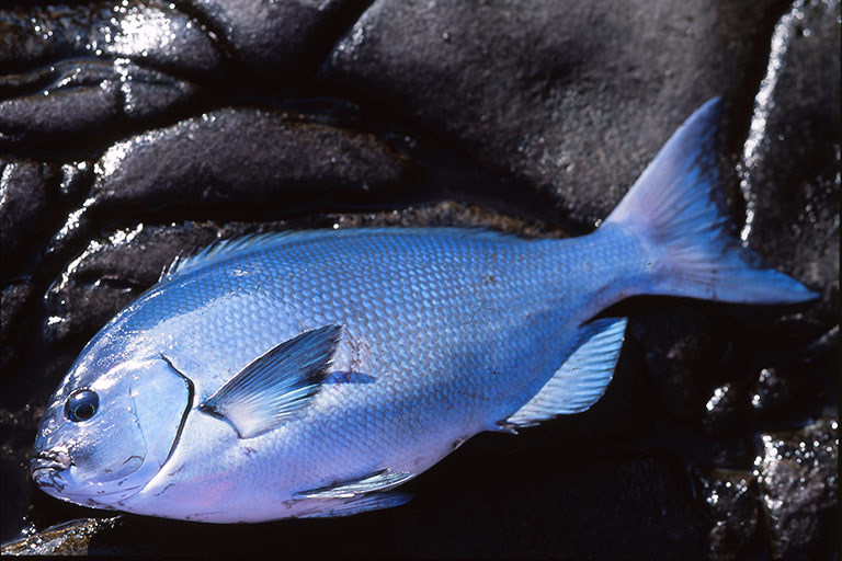 グレの標準和名はメジナ。当サイトでも、通常は「メジナ」や「メジナ釣り」と表記していますが、この釣りの発祥地である西日本では「グレ」や「クロ」と呼ぶため、熱心なファンや釣りメーカーの間では「グレ」「グレ釣り」という呼び方が一般化しています。ちなみにグレには釣り人の間で「クチブト(口太)」と「オナガ(尾長)」と呼ぶ大きく2種類がいて、どちらも同じようにグレ釣りの対象魚ですが、クチブトは沿岸性がより強く、オナガは強い潮の流れを好み回遊性がより強いという傾向があります。ただし、多くの釣り場ではその両方が釣れます。