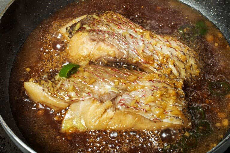 深海に棲む魚はどれも煮魚にすると美味しいが、なかでもアカムツは絶品。唐辛子を加えてぴりっとした辛みも与えてやると、ご飯にもお酒にも合う一品の出来上がり。