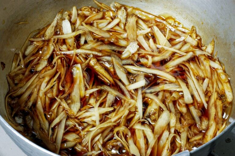 - ・ゴボウ用煮汁(市販のウナギ蒲焼きのたれ1:だし4の割合で200cc)