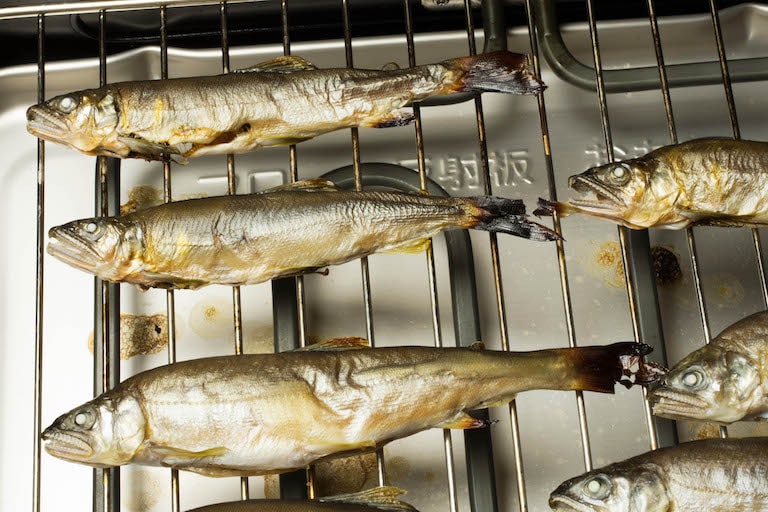 魚焼き器などを使って塩を振らず、両面に薄く焼き目が付く程度の素焼きにする。