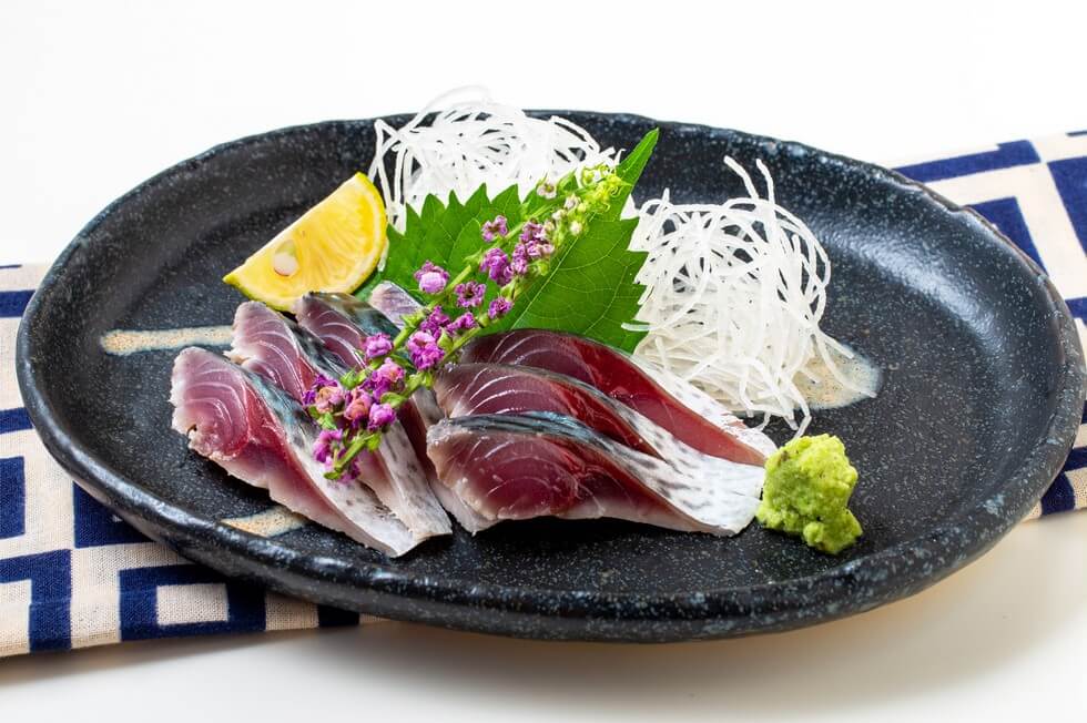 ゴマサバは夏サバとも呼ばれ、秋から冬にかけてが旬のマサバと違い、夏でも味が落ちない。食中毒予防も期待できる締めサバでさっぱりいただく。