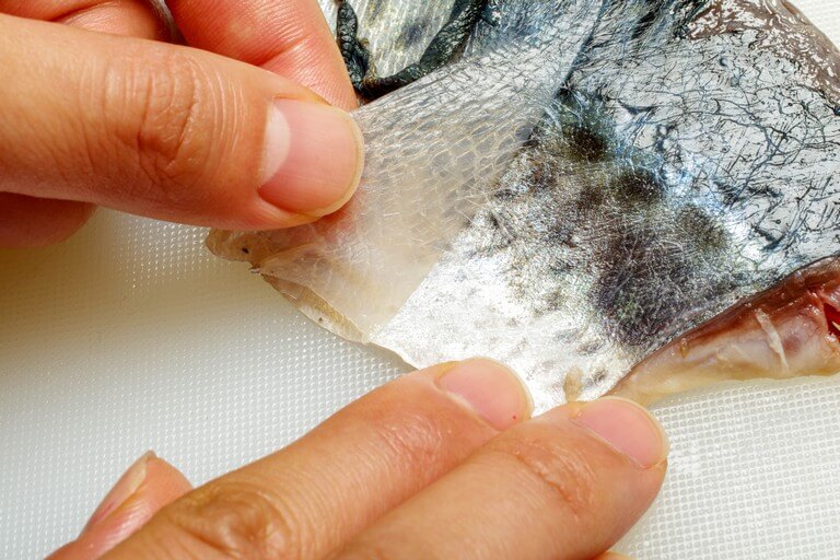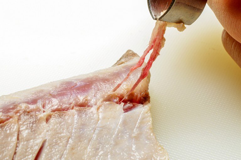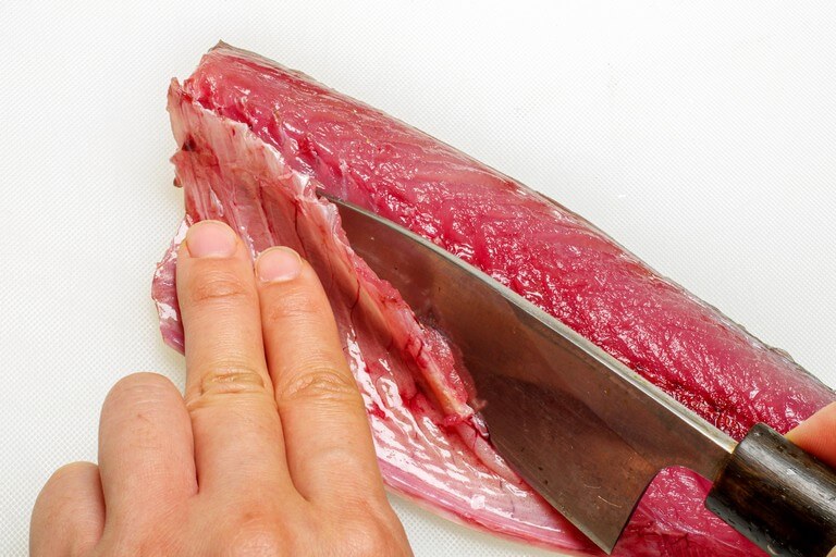 この時、軟らかい腹身は千切れやすいので、そっと押さえつつ一手一手慎重に作業する。