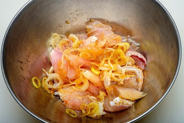 - ・漬け調味料(醤油小さじ1、長ネギの薄切りひとつまみ)