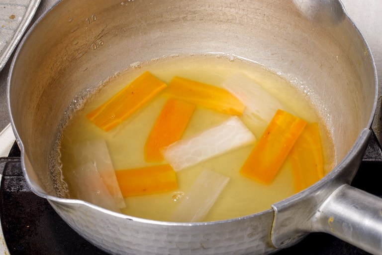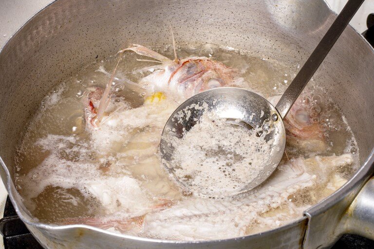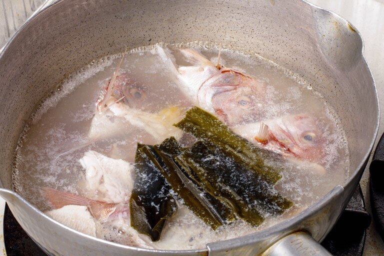 - ・あらだし(ハナダイのあら全量、昆布10cm角1枚、水1L)