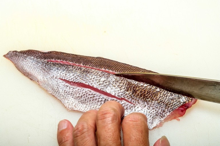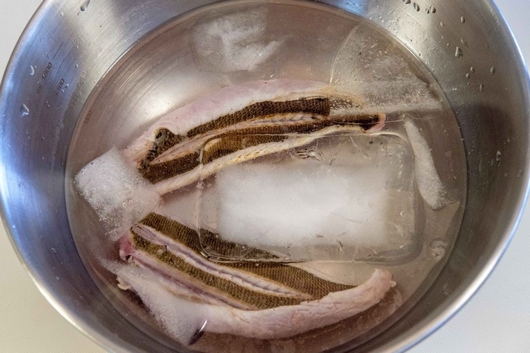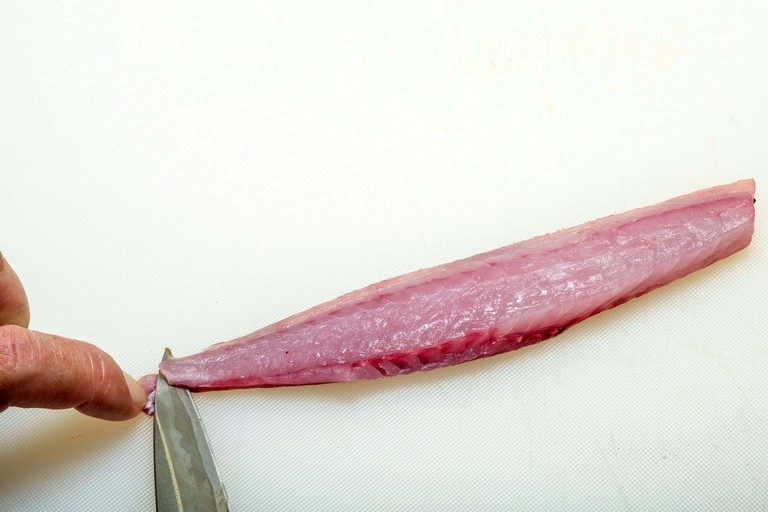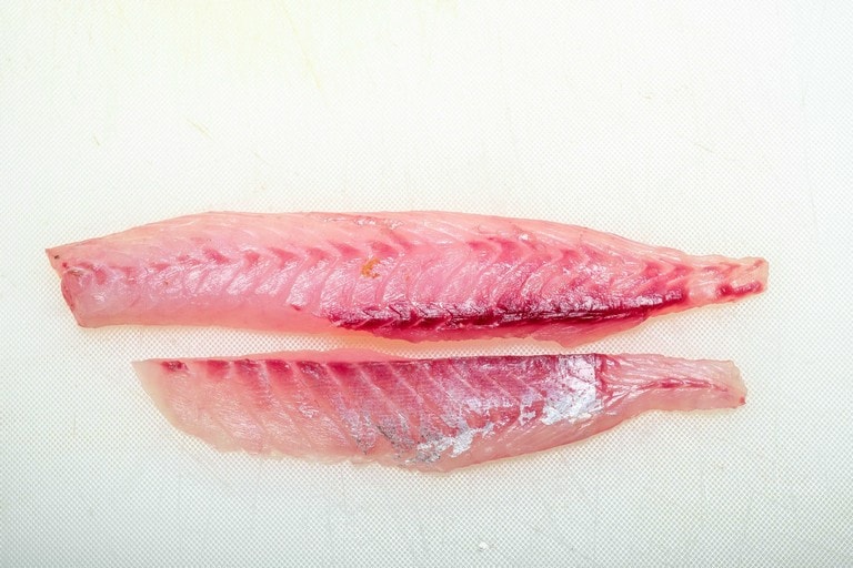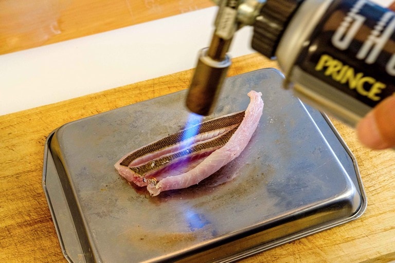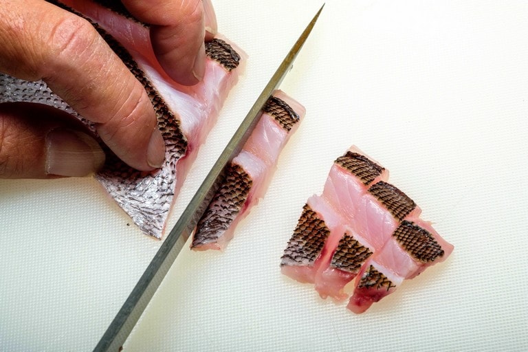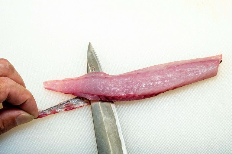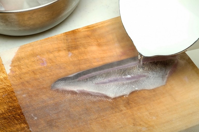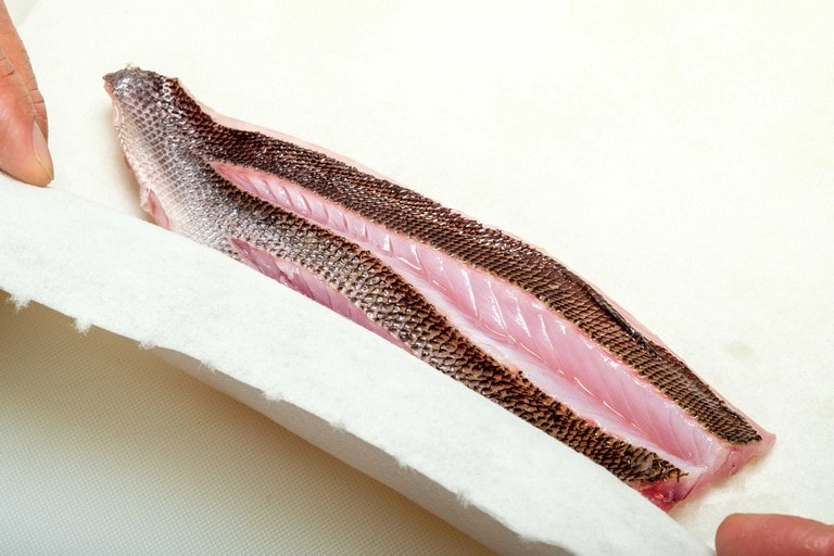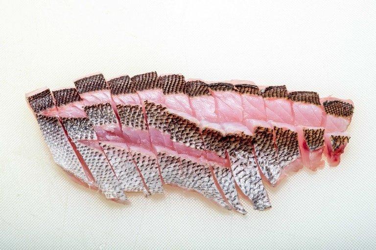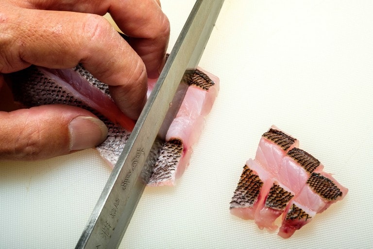 きれいな薄ピンクの身でクセがなく、多くの人に好まれるイサキ。食べやすいそぎ切りが定番だが、イサキは皮も美味しい。その皮を楽しむ「皮霜造り」と「焼き霜造り」も作れば、味わいのバリエーションが増す。