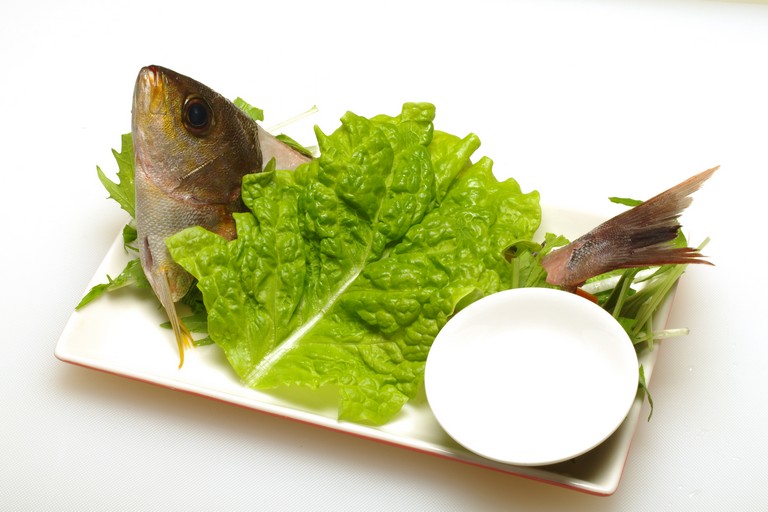 クセのないイサキの身は、カルパッチョなどサラダ風に調味しても、おつまみやおかずにぴったり。たっぷりの香味野菜と合わせてから、辛み味噌を効かせて味わう韓国風の姿造りもおすすめの一品だ。