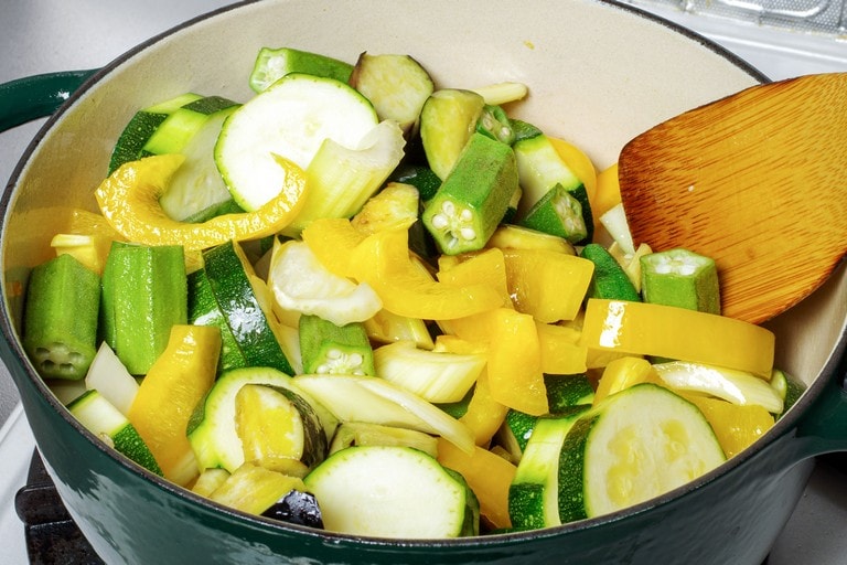 和風の調理がメインになることが多いキンメダイだが、ソテーしてからたくさんの野菜と合わせていただくラタトゥイユはヘルシーで食べ応えもあるおすすめ調理法。キンメの上品な身は熱を通してもふっくら。