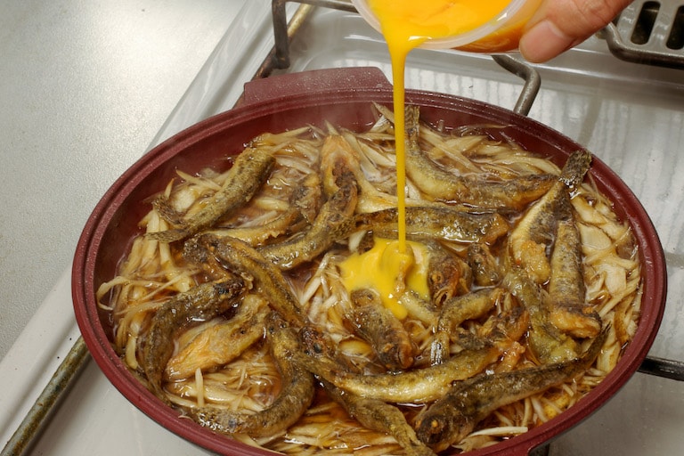 通常はドジョウを材料にする柳川鍋だが、旨みのしっかりしたハゼで作っても美味しい。天ぷらなどとも違った味わいが楽しめる。
