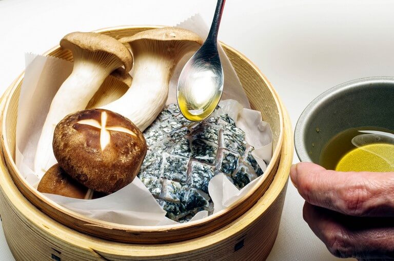 スズキの白身は生食以外ならムニエルも美味しいが、もうひとつ旨味を引き出すおすすめ調理法が「蒸し」。濃い味のたれとの組み合わせでさらに味が膨らむ。